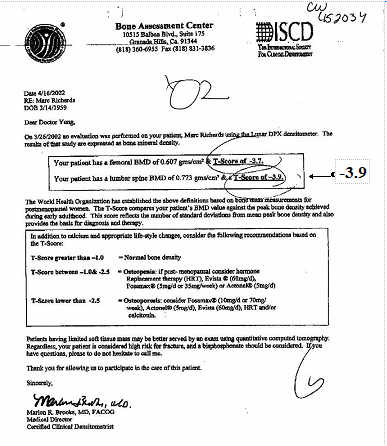 Now proceed to Bone Density scan results for 2004