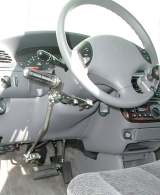 My right hand holds the spinner knob seen on the steering wheel at far right of picture. My left hand holds the new handle sticking out below the turn signal. If I push forward, it activates the brake pedal. If I rotate the handle towards the floor, the accelerator pedal is activated. The gear control for this car is on the center console. Driving with hand controls feels completely normal. It has been shown that your reaction time is faster with hand controls than by using your feet. If an able bodied person wants to, they can drive the car as if there aren't any extra controls (The spinner knob can be easily removed)