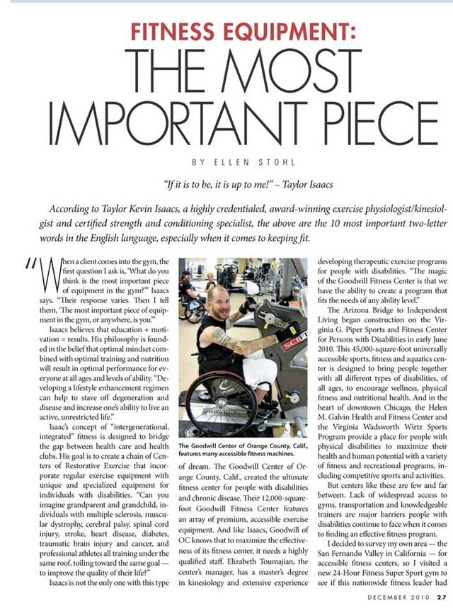 New Mobility Article about Taylor and his philosophy, and accessible gyms